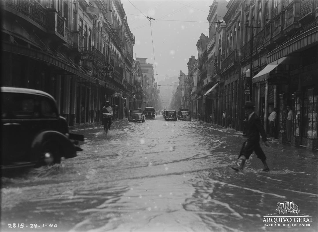 This haphazard approach to urban planning has meant that for centuries the city has experienced dramatic floods, captured by some of the city’s greatest documentarians, including Augusto Malta, who was official photographer for the mayor’s office from 1903 to 1936; J. Carlos, a prolific cartoonist who lampooned local policymakers’ solutions in the early to mid twentieth century; and renowned author Lima Barreto, who wrote in a 1915 crônica about floods in 1915, “Mayor Passos, who was so interested in the beautification of this city, totally neglected solving this problem of our Rio.” Barreto was taking aim at the early-twentieth-century urban reforms of Mayor Pereira Passos, whose attempt to remake Rio into the “Paris of the Tropics” involved the demolition of thousands of tenement homes and resulted in a more fully segregated city.